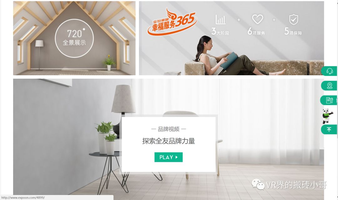 如果把这些内容通过传统网站模块进行表述,那会让网站设计师怀疑人生,不是客户体验不足就是无法满足于这个展示和营销的需求。当然,目前这个问题已经被VR全景技术完美的解决,在全友家私的VR全景展厅中,客户不仅可以参观全友家私亚洲最大的产品展示厅,通过系统自带的语音导购和热点图标对产品进行详细了解,还可以直观的看到家具生产的整条流水线,以及相关生产机械设备,无论是对于最终消费者还是对于产品经销商,品牌形象得以最真实最大化的展示,企业文化得以最全面的阐述,产品得以最直观的表达,官网的价值得以最大化的体现,对于全友家私的官方网站来说,VR全景无疑是赋予了网站的“魂”,将原本平平淡淡的工具打磨成了公司宣传,展示以及营销的神器,不仅是官方网站,全友家私的微信公众号以及相关人员名片上都有VR全景展厅的进入接口,大大提高利用率和转化率。